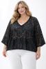 Kort blus/ponchoblus i makraméspets med V-ringning. Extra lös, boxig passform med 3/4-dels nedsänkta ärmar. . Materialet lätt och behagligt 95 % bomull, 5 % elastan med vackert fall.