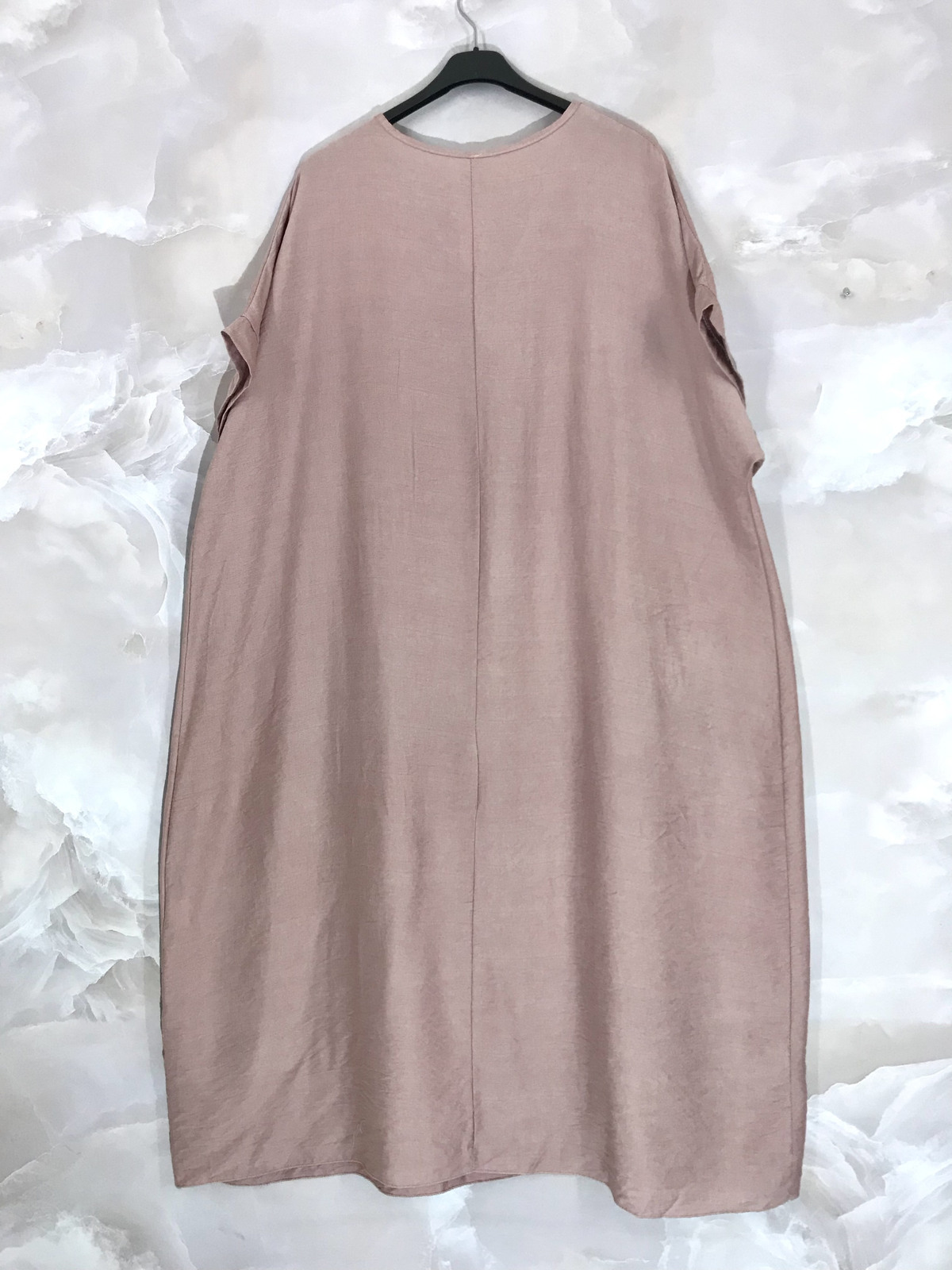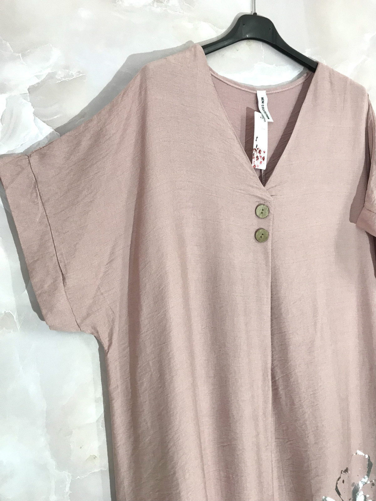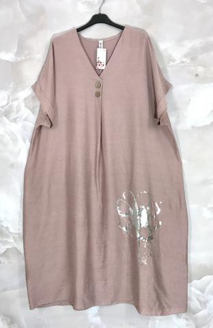 Tillverkad i ItalienHiean roosaan taittuva beige pitkä mekko helman hopeakukalla. A-linjainen leikkaus ja V-kaula-aukko jossa puunapit. Materiaalina kevyt ja miellyttävä 85% viskoosi, 15% polyesteri.