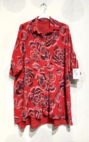 Valmistusmaa: ItaliaRöd lätt blommönstrad tunikaskjorta. A-linjeformad modell med uppvikbara ärmar. Materialet lätt och behagligt 100 % bomull