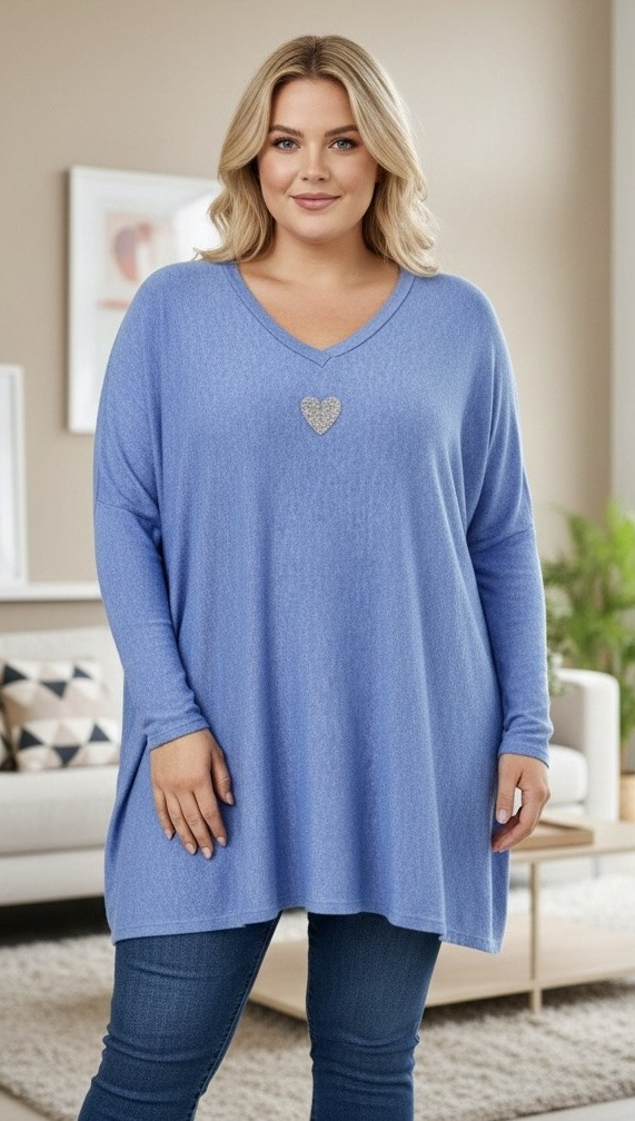 Ljusblå mjuk tunika med hjärta