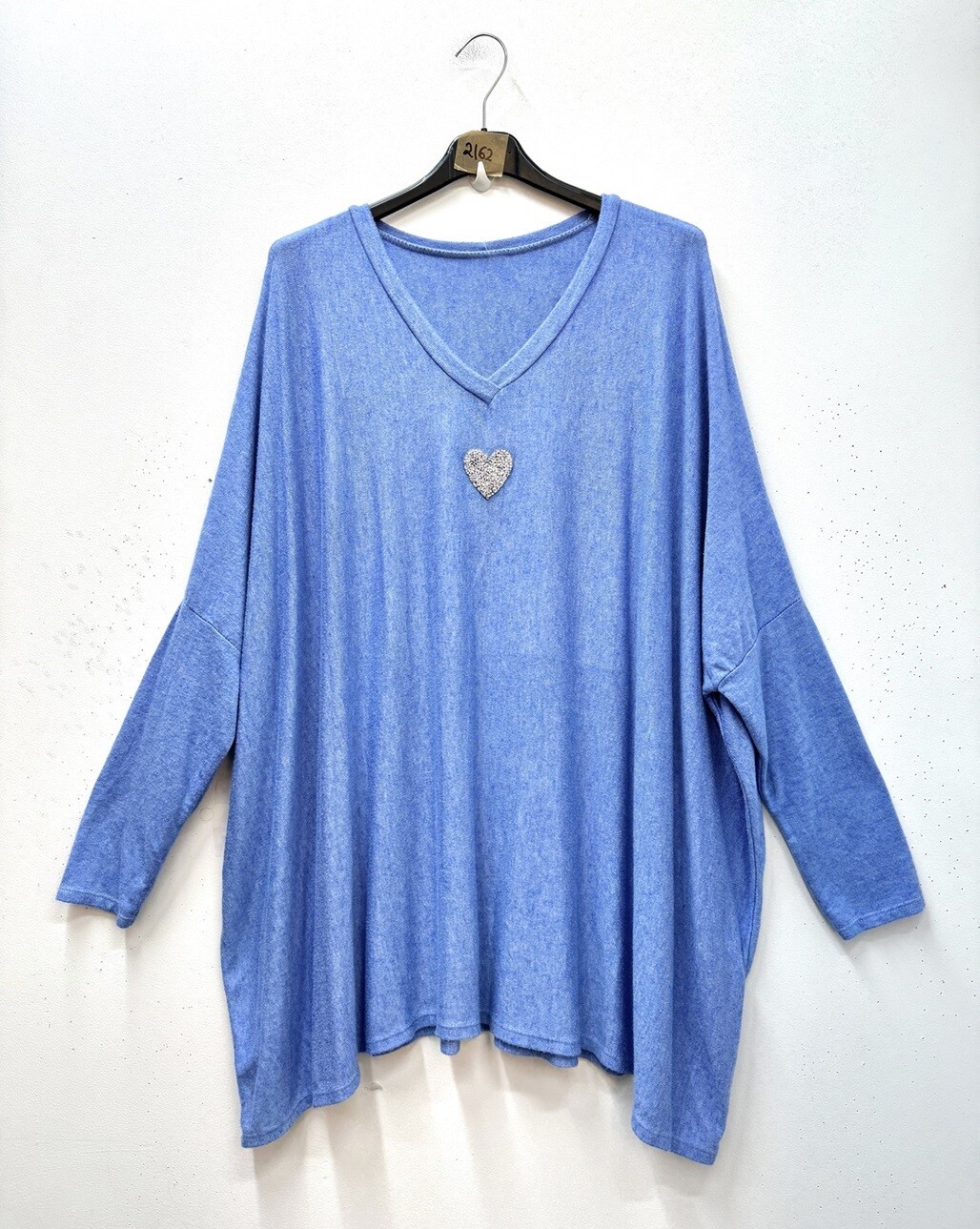 Ljusblå mjuk tunika/tunika-poncho med litet hjärtdekor. Oversize modell.Materialet mjukt och behagligt 68% viskos, 13% nylon, 14% polyester, 5% elastan