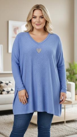 Valmistusmaa: ItaliaLjusblå mjuk tunika/tunika-poncho med litet hjärtdekor. Oversize modell.Materialet mjukt och behagligt 68% viskos, 13% nylon, 14% polyester, 5% elastan