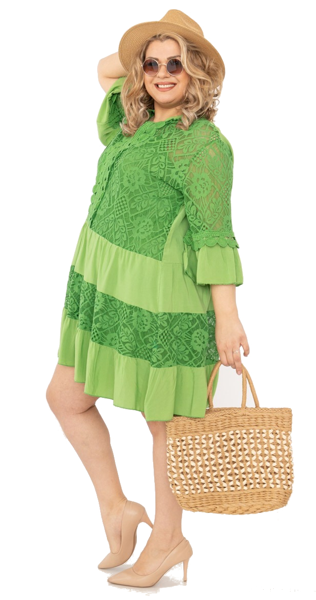 Beige mekko pitsillä. A-linjainen leikkaus. Mukana erillinen hyvin joustava alusmekko. Lisäkuvat limenvihreästä mekosta. Materiaalina kevyt ja miellyttävä 95 % puuvilla, 5 % elastaani.