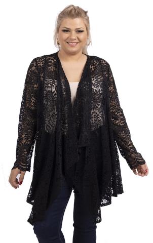 Svart öppen spetsjacka. A-linjeformad modell. Materialet stretchande och behagligt 95 % polyester, 5 %Tillverkad i FrankrikeTillverkad i Italien